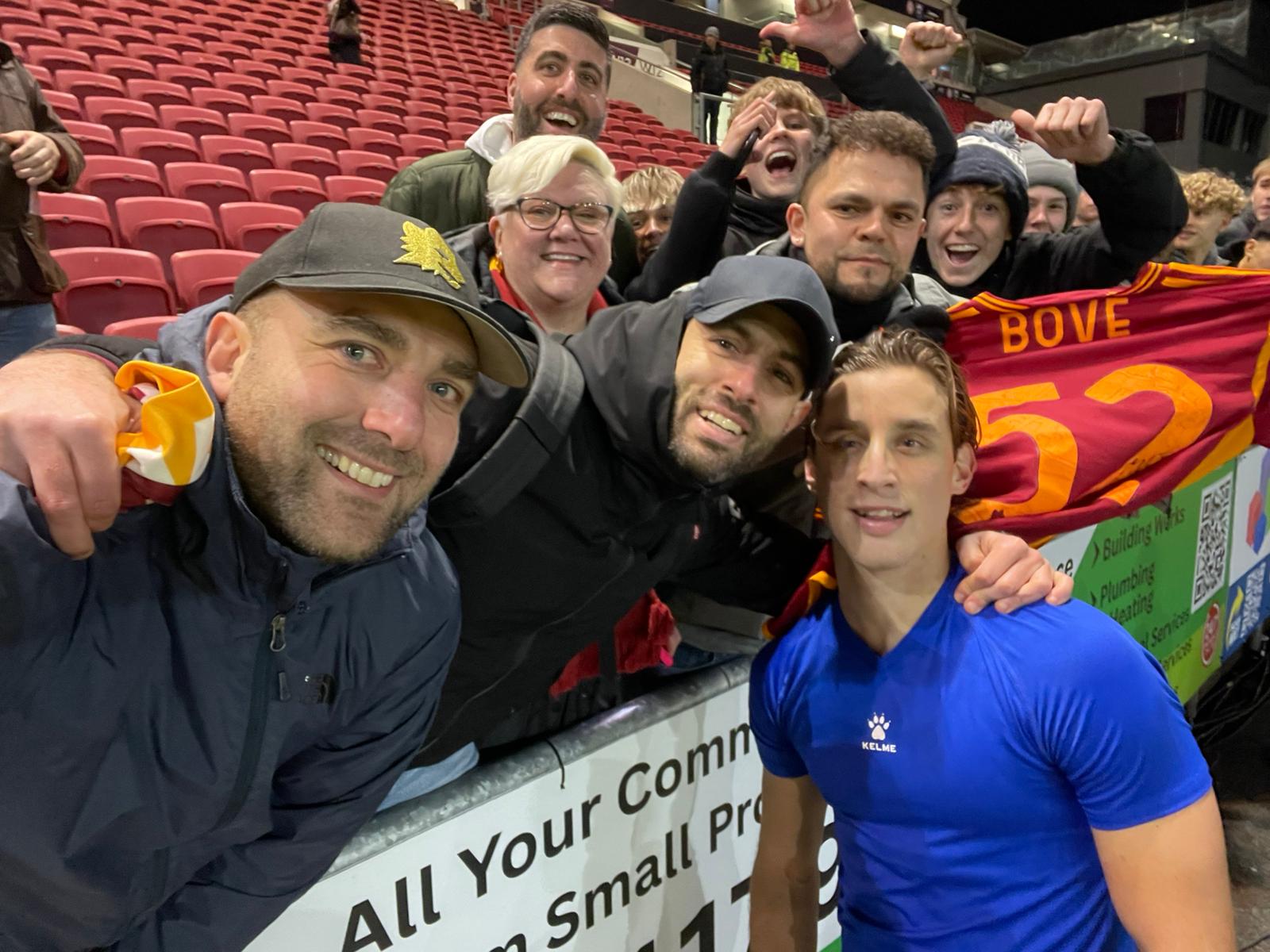Our moment came in the 80th minute when Bove stepped onto the pitch. We roared. When he was knocked down moments later, hearts stopped — then he bounced back up, fearless as ever. After the final whistle, he came over, signed our shirt and our flag, and gave us a memory we’ll never forget. Three points for Watford — and a perfect night for a group of Roma fans who just wanted to see one of their own shine again.